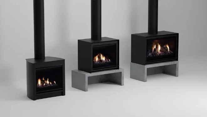 Elevate your home with the Escea DFS Series, a collection of sleek, contemporary freestanding gas fireplaces designed to enhance any interior.